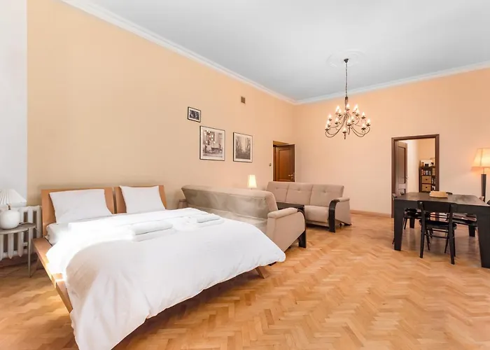 The spacious 80 m² Apartament Wilcza By Your Freedom is located a 5-minute walk from Warsaw Institute of Technology and looks out onto the city. 25 minutes' walk from Holy Cross Church, the 1-bedroom apartment is situated in the Srodmiescie district.